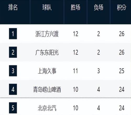 CBA积分榜最新排名出炉!广厦杀回第1:广东第2辽宁仅第10